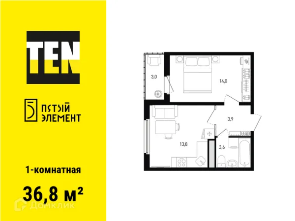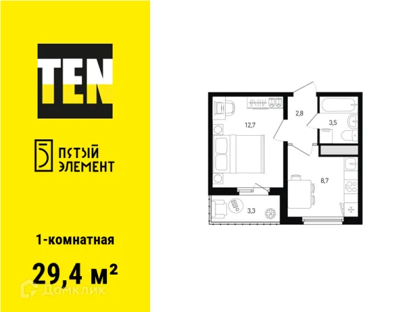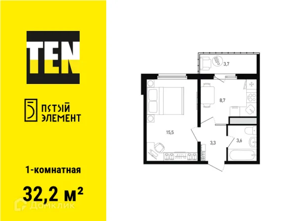 1 комн. квартира в Ростове-на-Дону в ипотеку от 22 193 руб/месяц