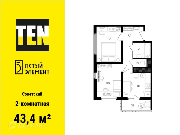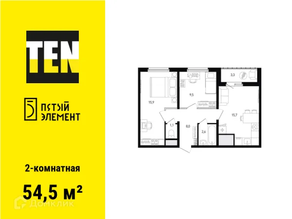 2 комн. квартира в Ростове-на-Дону в ипотеку от 32 639 руб/месяц