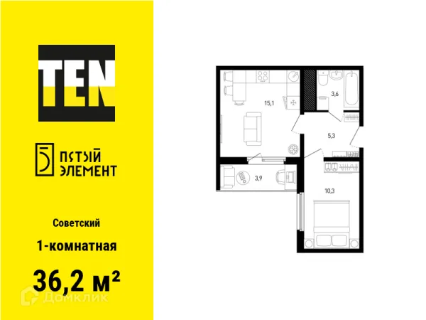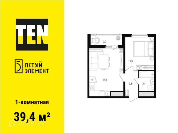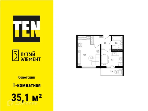 1 комн. квартира в Ростове-на-Дону в ипотеку от 19 963 руб/месяц