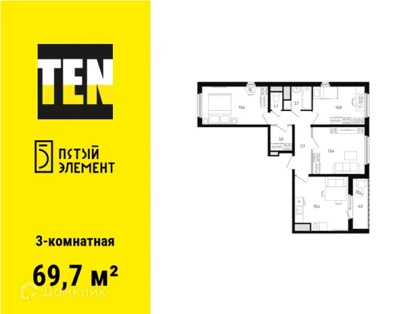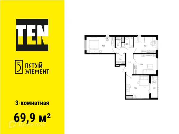3 комн. квартира в Ростове-на-Дону в ипотеку от 152 658 руб/месяц