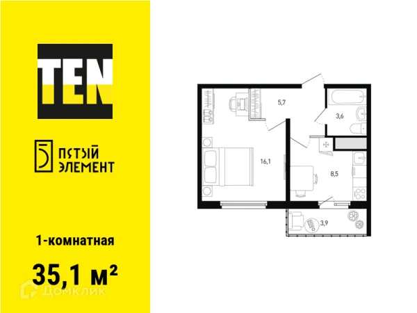 1 комн. квартира в Ростове-на-Дону в ипотеку от 21 638 руб/месяц