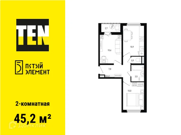 2 комн. квартира в Ростове-на-Дону в ипотеку от 28 281 руб/месяц