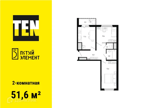 2 комн. квартира в Ростове-на-Дону в ипотеку от 36 944 руб/месяц