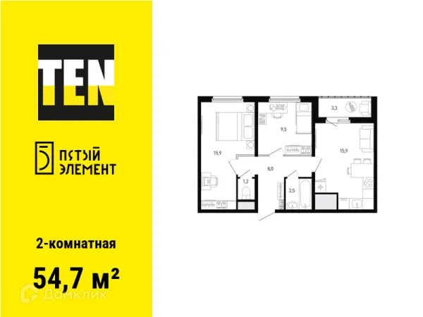 2 комн. квартира в Ростове-на-Дону в ипотеку от 31 177 руб/месяц