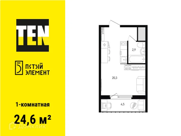 1 комн. квартира в Ростове-на-Дону в ипотеку от 23 089 руб/месяц