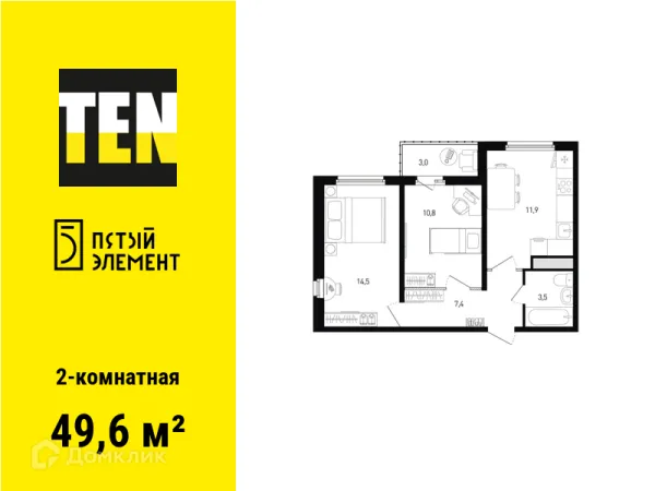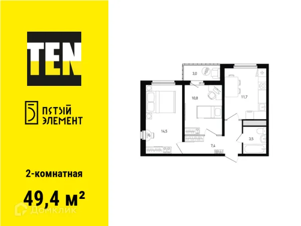 2 комн. квартира в Ростове-на-Дону в ипотеку от 23 281 руб/месяц