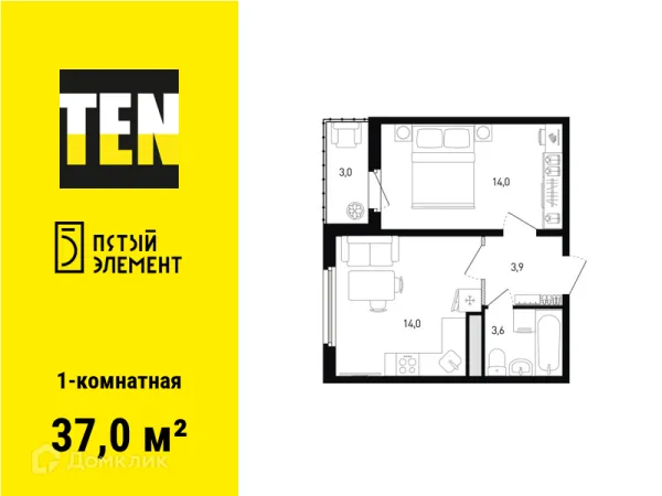 1 комн. квартира в Ростове-на-Дону в ипотеку от 13 134 руб/месяц