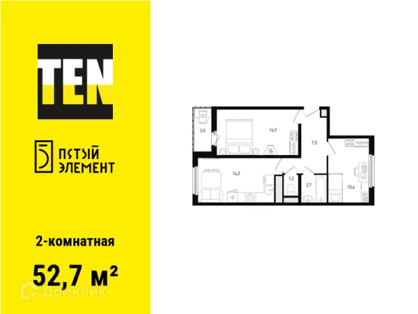 2 комн. квартира в Ростове-на-Дону в ипотеку от 26 537 руб/месяц
