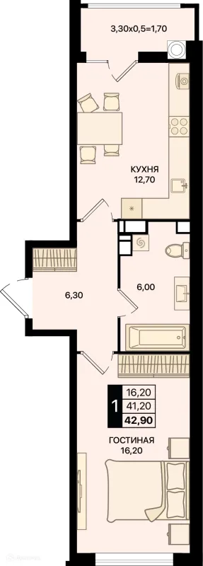1 комн. квартира в Ростове-на-Дону в ипотеку от 42 563 руб/месяц