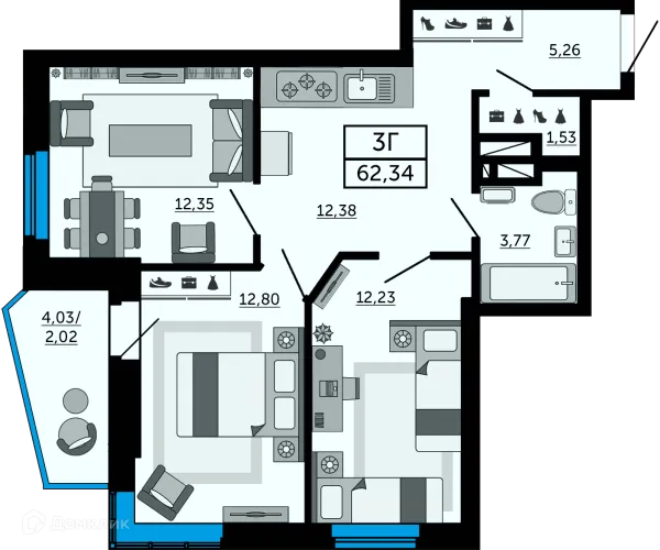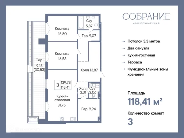 3 комн. квартира в Ростове-на-Дону в ипотеку от 66 429 руб/месяц