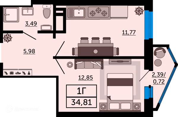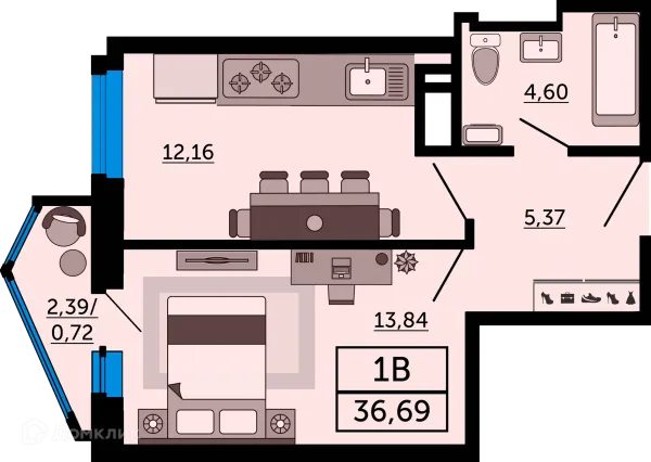 1 комн. квартира в Ростове-на-Дону в ипотеку от 35 184 руб/месяц