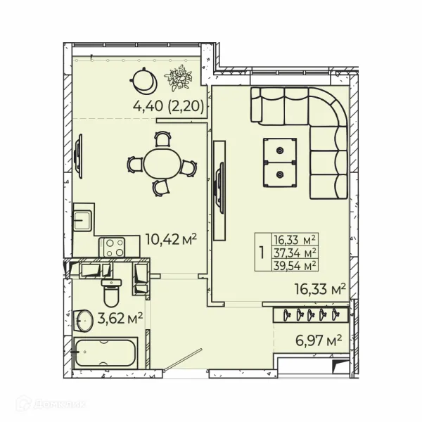 1 комн. квартира в Ростове-на-Дону в ипотеку от 40 124 руб/месяц