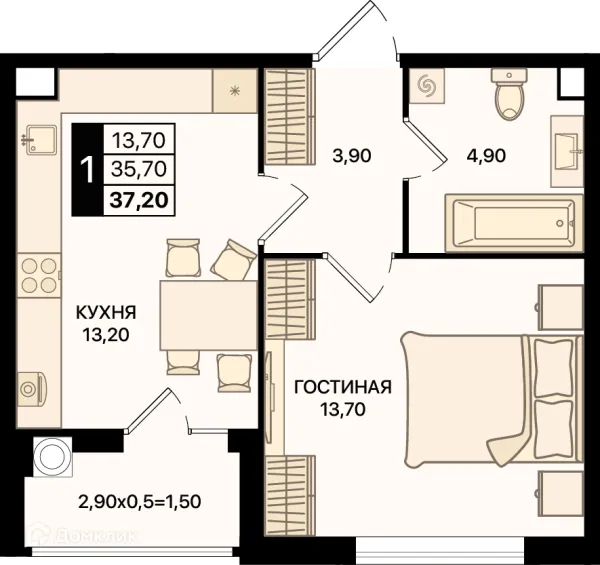 1 комн. квартира в Ростове-на-Дону в ипотеку от 37 164 руб/месяц