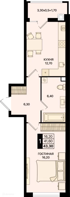 1 комн. квартира в Ростове-на-Дону в ипотеку от 50 330 руб/месяц
