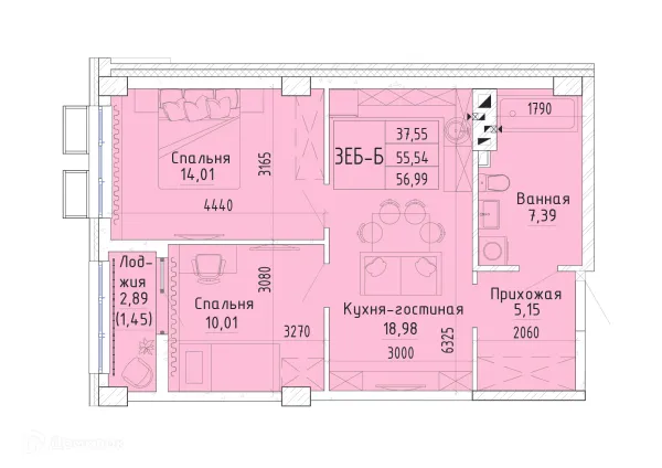 2 комн. квартира в Ростове-на-Дону в ипотеку от 56 081 руб/месяц