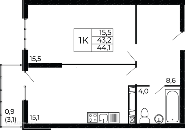 1 комн. квартира в Ростове-на-Дону в ипотеку от 51 858 руб/месяц