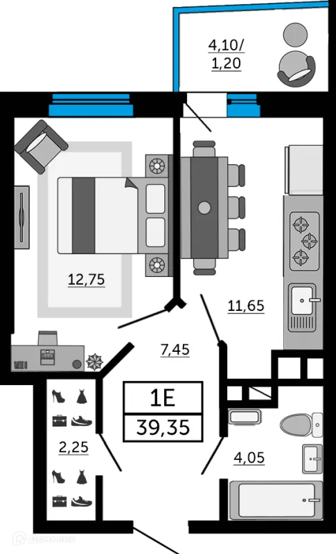 1 комн. квартира в Ростове-на-Дону в ипотеку от 41 087 руб/месяц