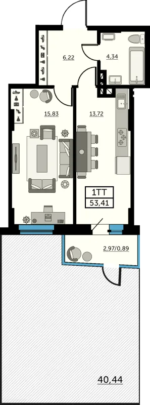 1 комн. квартира в Ростове-на-Дону в ипотеку от 53 481 руб/месяц