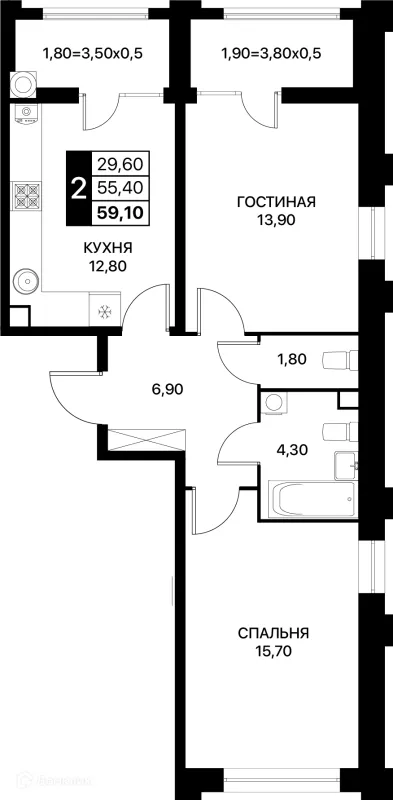 2 комн. квартира в Ростове-на-Дону в ипотеку от 55 095 руб/месяц