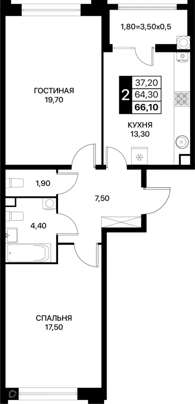2 комн. квартира в Ростове-на-Дону в ипотеку от 52 179 руб/месяц