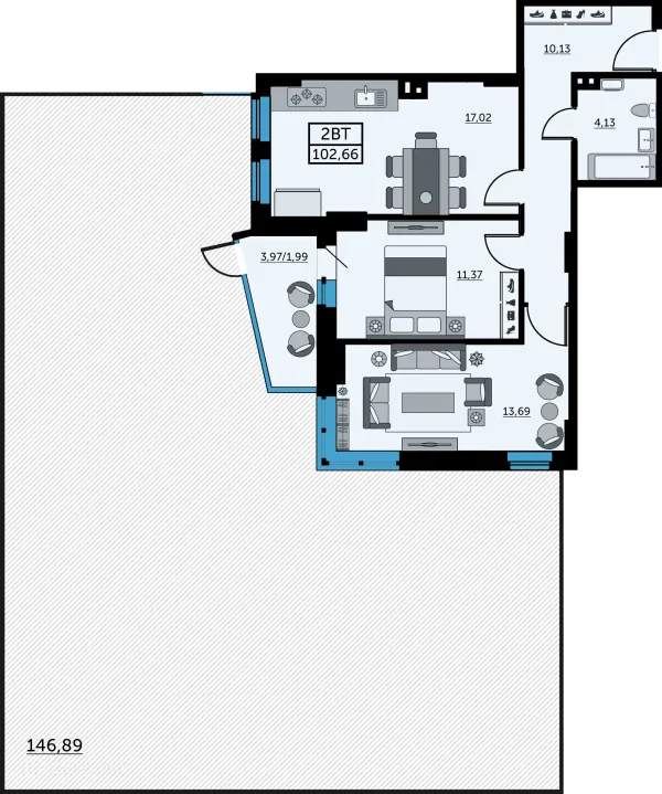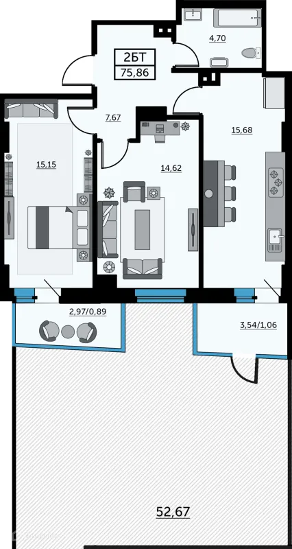 2 комн. квартира в Ростове-на-Дону в ипотеку от 81 318 руб/месяц