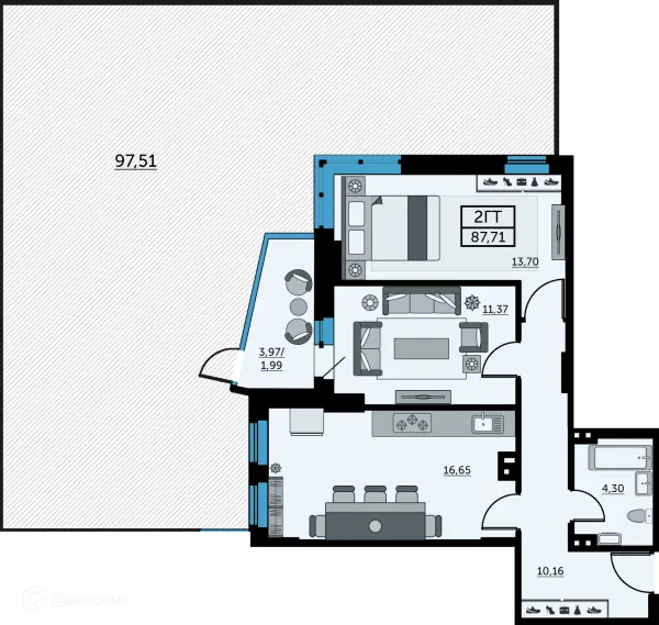 2 комн. квартира в Ростове-на-Дону в ипотеку от 71 014 руб/месяц