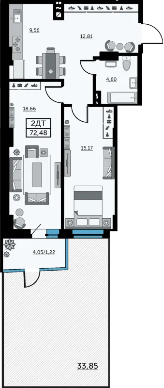 2 комн. квартира в Ростове-на-Дону в ипотеку от 48 696 руб/месяц