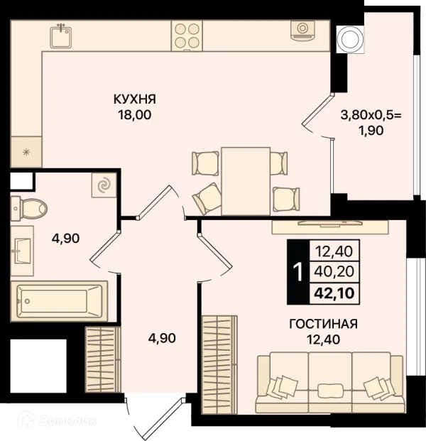 1 комн. квартира в Ростове-на-Дону в ипотеку от 43 212 руб/месяц