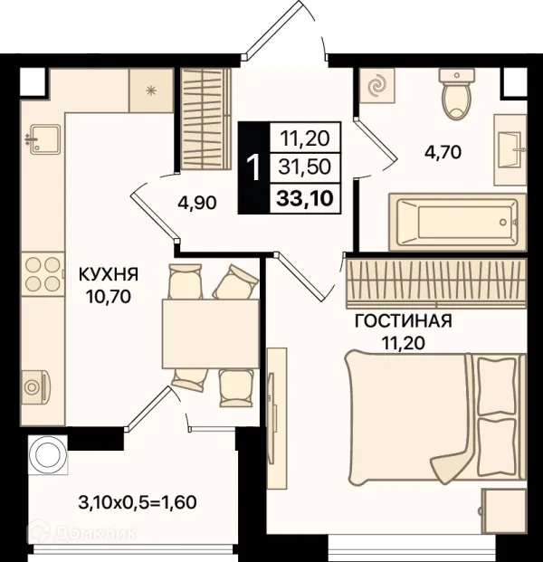 1 комн. квартира в Ростове-на-Дону в ипотеку от 39 710 руб/месяц