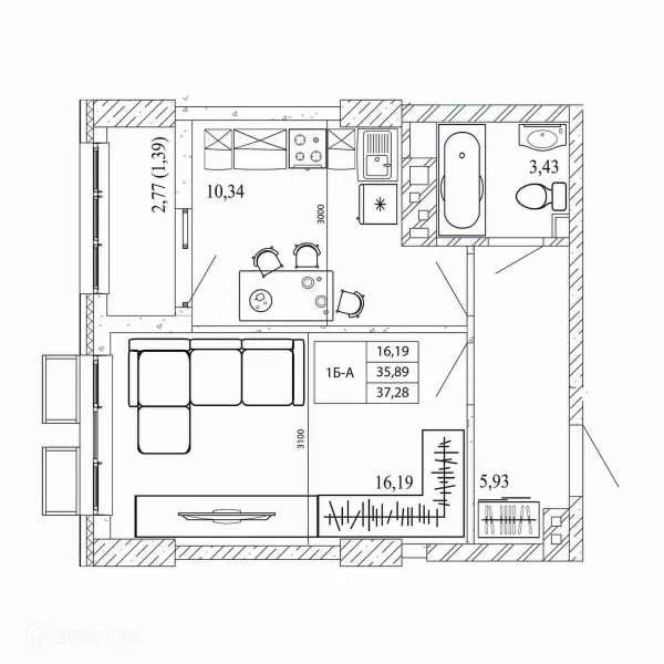 1 комн. квартира в Ростове-на-Дону в ипотеку от 39 801 руб/месяц