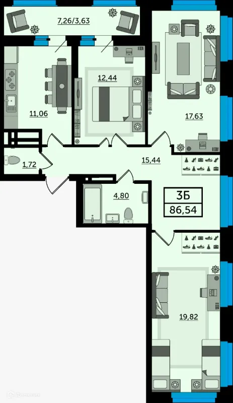 3 комн. квартира в Ростове-на-Дону в ипотеку от 86 019 руб/месяц