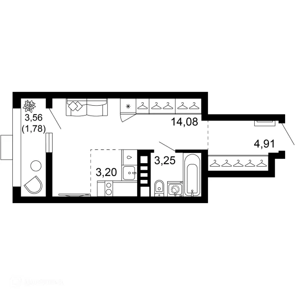 1 комн. квартира в Ростове-на-Дону в ипотеку от 57 746 руб/месяц