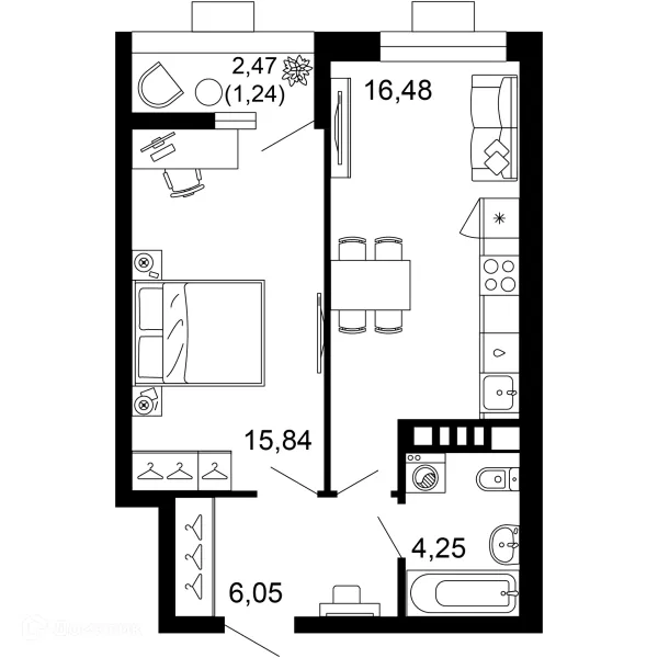 1 комн. квартира в Ростове-на-Дону в ипотеку от 48 593 руб/месяц