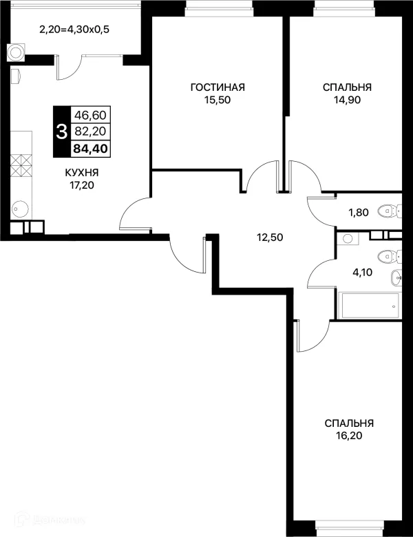 3 комн. квартира в Ростове-на-Дону в ипотеку от 75 800 руб/месяц
