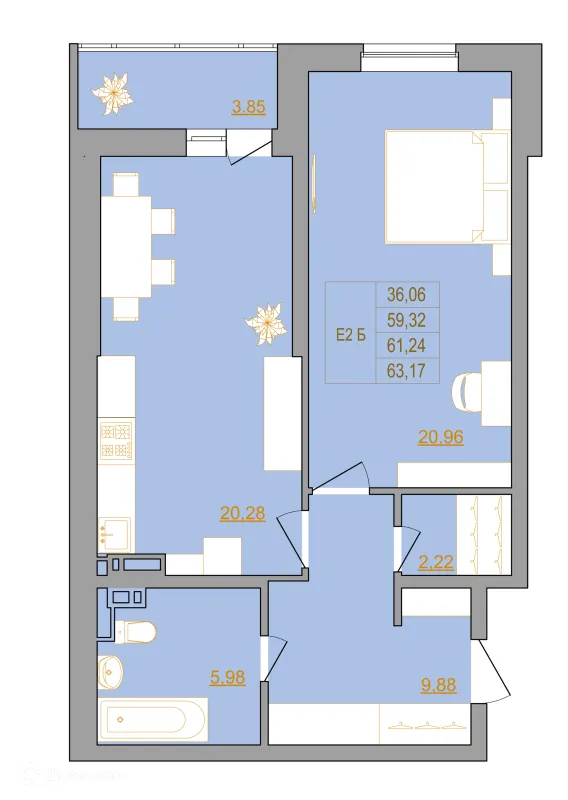 2 комн. квартира в Ростове-на-Дону в ипотеку от 43 007 руб/месяц