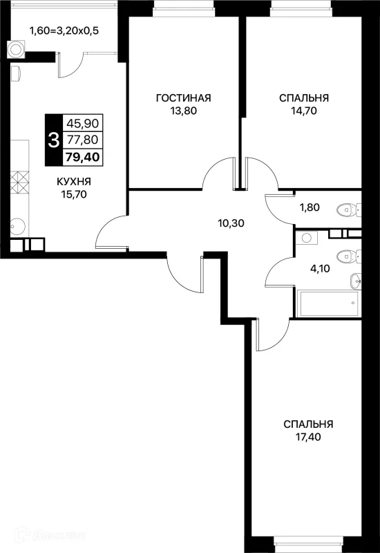 3 комн. квартира в Ростове-на-Дону в ипотеку от 69 899 руб/месяц