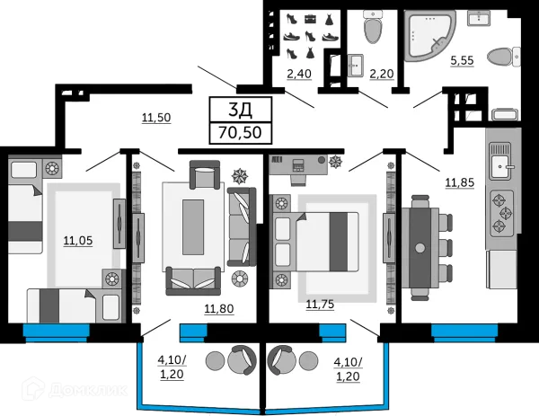 3 комн. квартира в Ростове-на-Дону в ипотеку от 70 569 руб/месяц