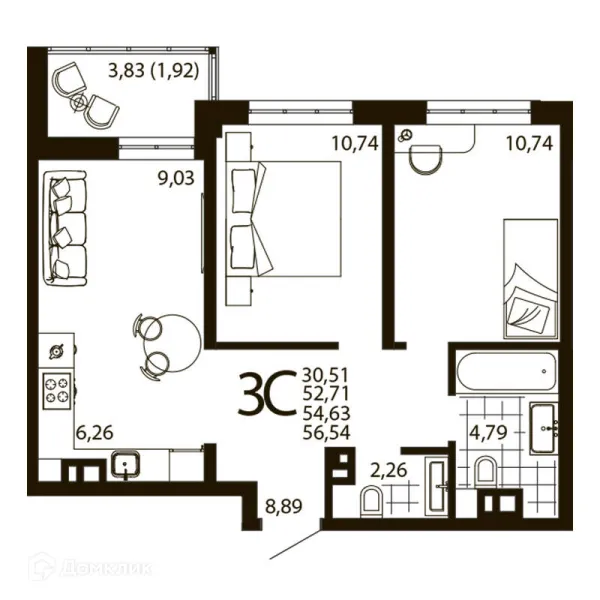 3 комн. квартира в Ростове-на-Дону в ипотеку от 55 074 руб/месяц
