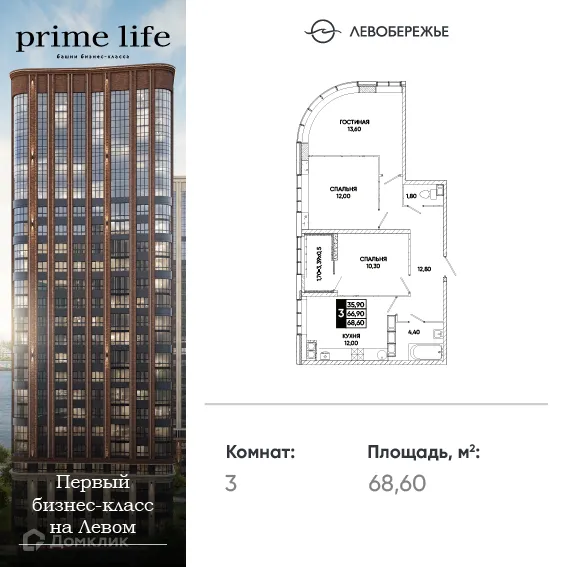 3 комн. квартира в Ростове-на-Дону в ипотеку от 68 965 руб/месяц