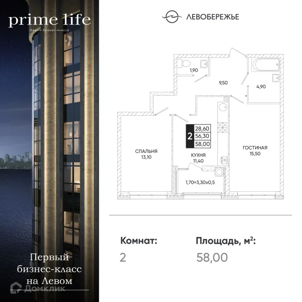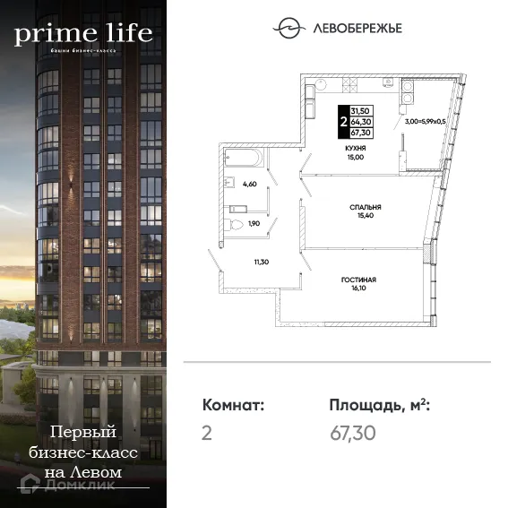 2 комн. квартира в Ростове-на-Дону в ипотеку от 59 808 руб/месяц