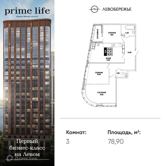 3 комн. квартира в Ростове-на-Дону в ипотеку от 76 540 руб/месяц