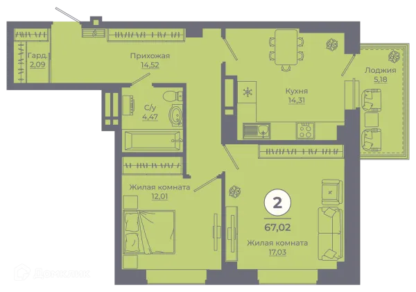 2 комн. квартира в Ростове-на-Дону в ипотеку от 42 671 руб/месяц
