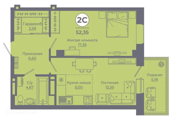 2 комн. квартира в Ростове-на-Дону в ипотеку от 51 571 руб/месяц