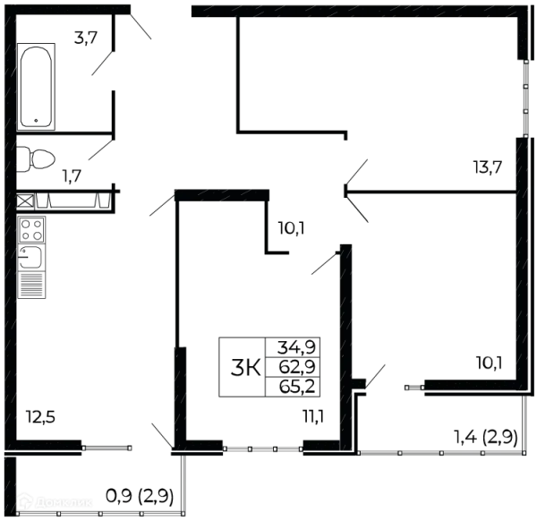 3 комн. квартира в Ростове-на-Дону в ипотеку от 62 432 руб/месяц
