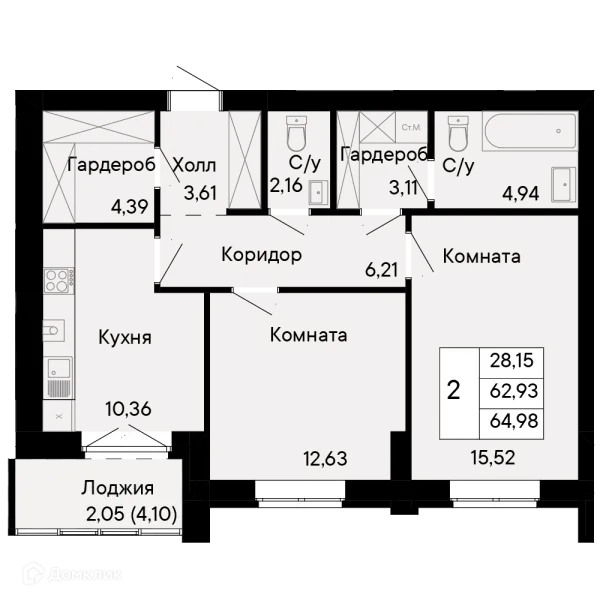 2 комн. квартира в Ростове-на-Дону в ипотеку от 83 466 руб/месяц