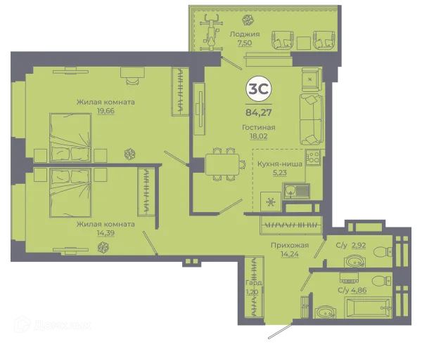 3 комн. квартира в Ростове-на-Дону в ипотеку от 65 848 руб/месяц