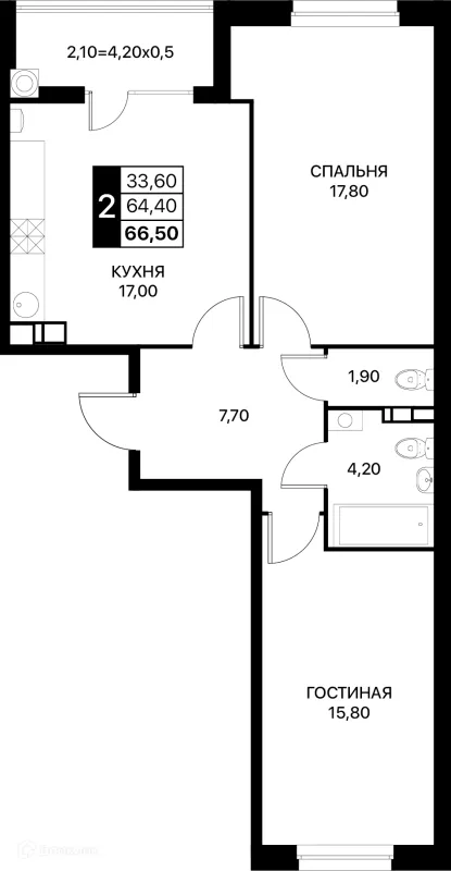 2 комн. квартира в Ростове-на-Дону в ипотеку от 66 825 руб/месяц