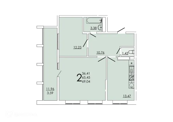 2 комн. квартира в Ростове-на-Дону в ипотеку от 71 869 руб/месяц