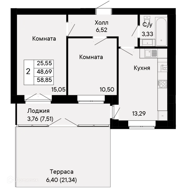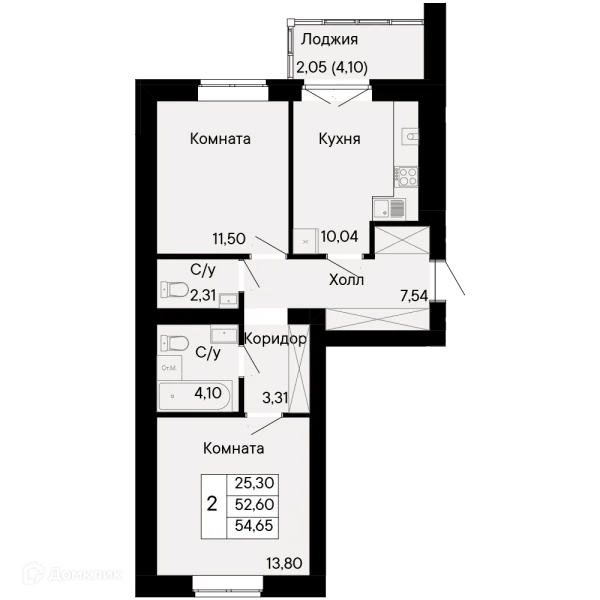 2 комн. квартира в Ростове-на-Дону в ипотеку от 66 113 руб/месяц