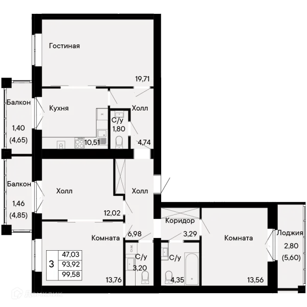 3 комн. квартира в Ростове-на-Дону в ипотеку от 125 488 руб/месяц
